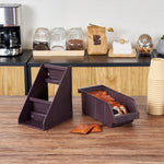 Streamline your foodservice operations with our Met Lux Brown Plastic Condiment Bin, a must-have for any efficient kitchen setup. Ideal for organizing, this condiment organizer keeps packets, napkins, and flatware neatly arranged, making it a versatile addition to your workspace. Pair this brown storage bin with our collection of compatible Met Lux stands and connector clips for a customized storage setup. Perfect for self-serve stations, this condiment holder ensures that all essentials are within easy reach for customers or staff, enhancing convenience and speed of service. Designed to save space, this condiment rack easily stacks with other units, enabling vertical storage that maximizes area efficiency. This condiment caddy provides a tidy and accessible solution for take-out order preparation stations. Measuring 12.24 inches in length by 4.96 inches in width by 4.25 inches in height, this sleek condiment storage unit fits seamlessly into any countertop arrangement. Sold in a 1 count box. Stands and connector clips are available and sold separately.