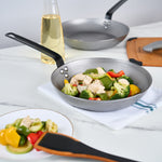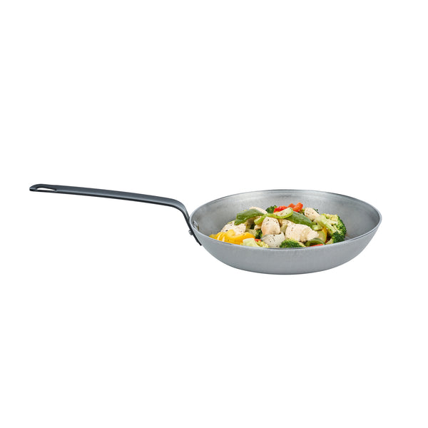 Achieve flawless culinary results with versatile cookware. The Met Lux Induction-Compatible Skillet offers exceptional durability with its 3 mm thick carbon steel construction, making it an indispensable tool for demanding culinary settings. Designed as a 10.2 inch skillet, its triple-riveted handle ensures a secure grip and added durability, allowing chefs to maneuver dishes with confidence. This carbon steel frying pan features an induction-safe design, supporting versatile cooking styles and enhancing kitchen efficiency. With an impressive 18.3 inches in length, it accommodates a variety of cooking techniques, providing even-heat distribution for consistent results. Its oven-safe skillet capability allows chefs to seamlessly transition from stovetop to oven, expanding culinary possibilities. Elevate your kitchen’s performance with this reliable skillet, optimizing your cooking process with precision. Each order includes 6 Met Lux Induction-Compatible Skillets.
