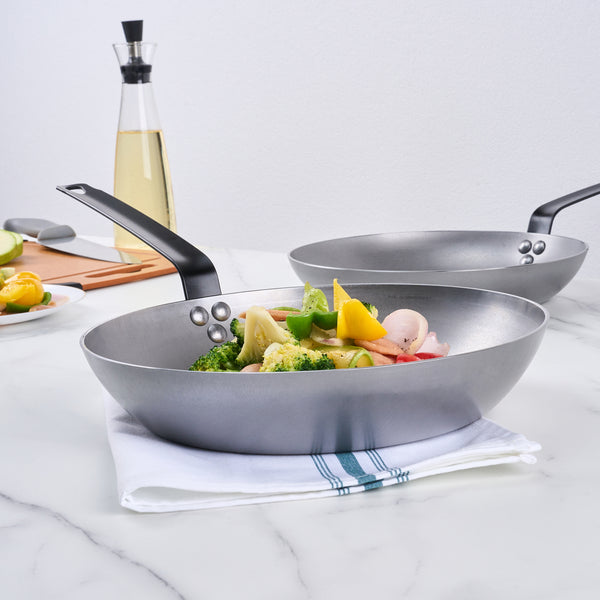 Enhance your culinary efficiency with a reliable carbon steel fry pan. The Met Lux Carbon Steel Fry Pan combines functionality and durability with its 3 mm thick carbon steel construction, ensuring robustness for demanding kitchens. This skillet features a triple-riveted handle that offers a secure grip, enhancing safety during cooking. With its induction-safe design, this steel fry pan supports versatile cooking methods, accommodating various culinary styles. Measuring 21.3 inches in length, 11.8 inches in width, and 4.7 inches in height, its substantial size is perfect for large-scale food preparation. The durable silver steel construction ensures even-heat distribution, making it ideal for professional chefs seeking reliability in their kitchen equipment. Upgrade your kitchen's capabilities with this fry pan designed for both oven and induction use. Each order includes 6 Met Lux Carbon Steel Fry Pans.