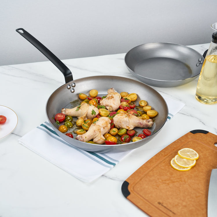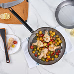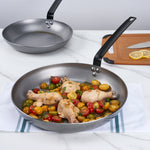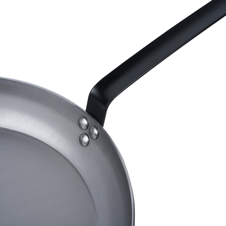 Enhance your culinary precision with versatile cooking tools. The Met Lux Carbon Steel Frying Pan is crafted from 3 mm thick carbon steel, ensuring robust durability for demanding kitchens. This carbon steel frying pan features a triple-riveted handle, providing a secure grip and longevity, which is essential for busy chefs. Its induction-safe design supports versatile cooking styles, making it an ideal induction-safe frypan for professional kitchens. Measuring 25.98 inches in length, this oven-safe fry pan distributes heat evenly, enhancing the efficiency of your cooking processes. The steel construction not only guarantees long-lasting use but also offers an induction-safe and oven-safe solution for all your frying needs. Elevate your kitchen's performance and invest in reliable cookware that withstands the rigors of foodservice environments. Each order includes 6 Met Lux Carbon Steel Frying Pans.