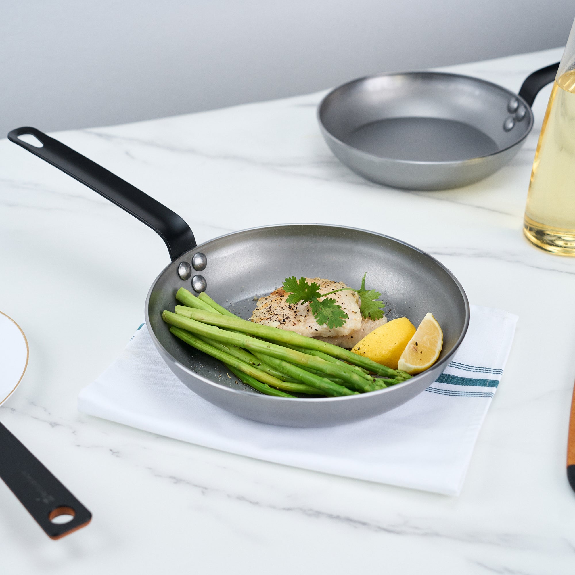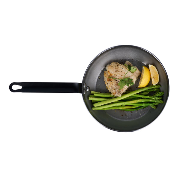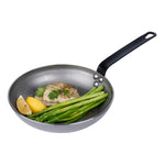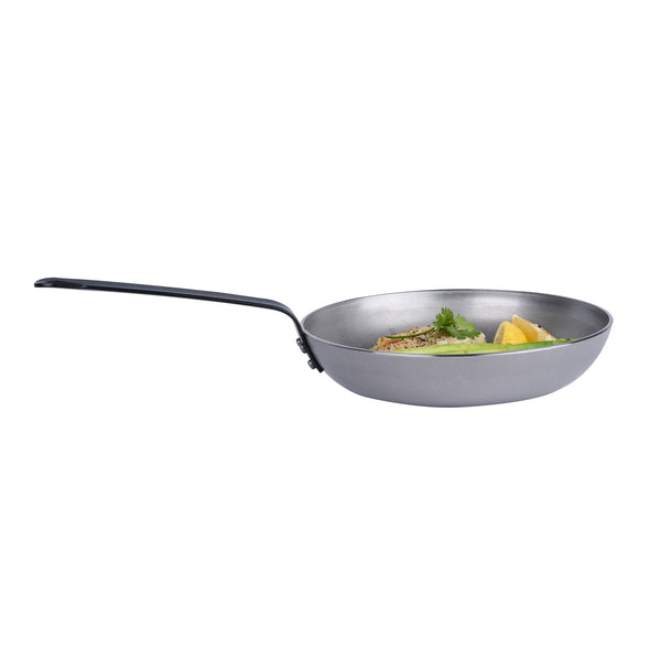 Enhance your kitchen efficiency with versatile cooking tools. The Met Lux Carbon Steel Fry Pan features a 3 mm thick carbon steel construction that resists wear in busy kitchens, making it an indispensable tool for professional chefs seeking a durable carbon steel fry pan. Equipped with a triple-riveted handle, this black steel frying pan ensures a secure grip for safer handling, even during high-demand services. Its induction-safe design supports diverse cooking techniques, providing chefs the flexibility to adapt to various culinary styles. With dimensions of 16.73 inches in length, 9.45 inches in width, and 3.85 inches in height, this steel fry pan offers even-heat distribution, essential for perfect cooking results. Elevate your cooking with this induction-safe fry pan, renowned for its reliability and performance. Each order includes 6 Met Lux Carbon Steel Fry Pans.