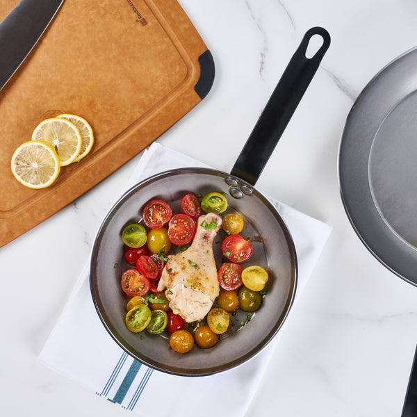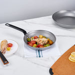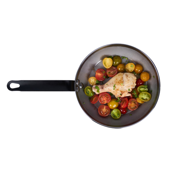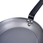 Achieve precise cooking results with versatile cookware. The Met Lux Carbon Steel Frying Pan delivers robust performance with its 3 mm thick carbon steel construction, perfect for the demands of high-volume kitchens. This non-stick carbon steel pan features a triple-riveted handle, ensuring a secure grip for safe handling and long-lasting durability. Designed to be induction-safe, this pan accommodates versatile cooking styles, making it suitable for both stovetop and oven use, which is ideal for chefs who demand flexibility in their culinary creations. Measuring 15.5 inches in length, its even-heat distribution provides consistent cooking results, saving time and energy in bustling foodservice environments. Enhance your kitchen's efficiency and reliability with this induction-safe fry pan. Each order includes 1 Met Lux Carbon Steel Frying Pan.