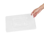Prevent contamination with a durable and clear storage solution. The Met Lux Polycarbonate Ingredient Container Lid features a robust polycarbonate construction that ensures longevity in bustling kitchens, making it the ideal ingredient container lid. Its clear design simplifies quick product identification, enhancing operational efficiency for busy chefs. Additionally, this polycarbonate storage lid includes a convenient handle, facilitating easy removal without the risk of spillage, essential for maintaining a clean food prep area. Measuring 15.4 inches in length and 9.4 inches in width, this food storage lid fits seamlessly on your containers, providing a secure barrier against contaminants. Dishwasher safe, it supports streamlined kitchen operations by allowing for effortless cleaning and reuse. Invest in this practical solution to maintain food safety and efficiency in your establishment. Each order includes 10 Met Lux Polycarbonate Ingredient Container Lids.
