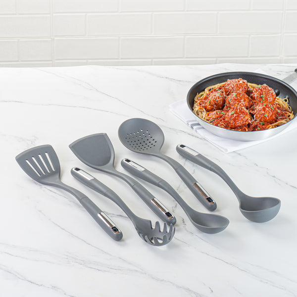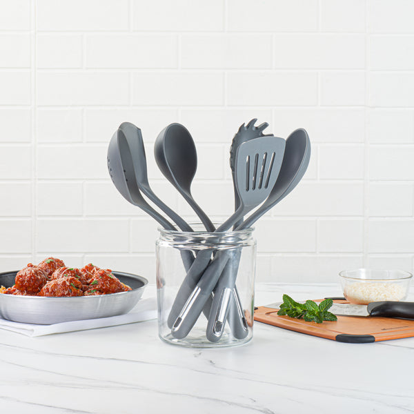DARK GRAY NYLON HIGH HEAT COOKING UTENSIL SET - 6-PIECE