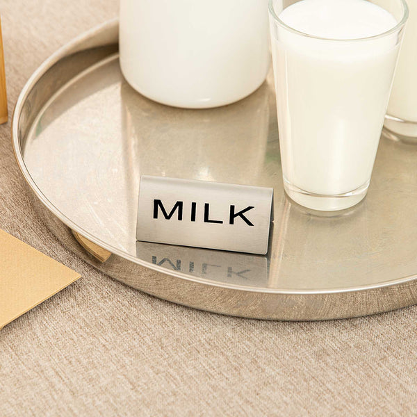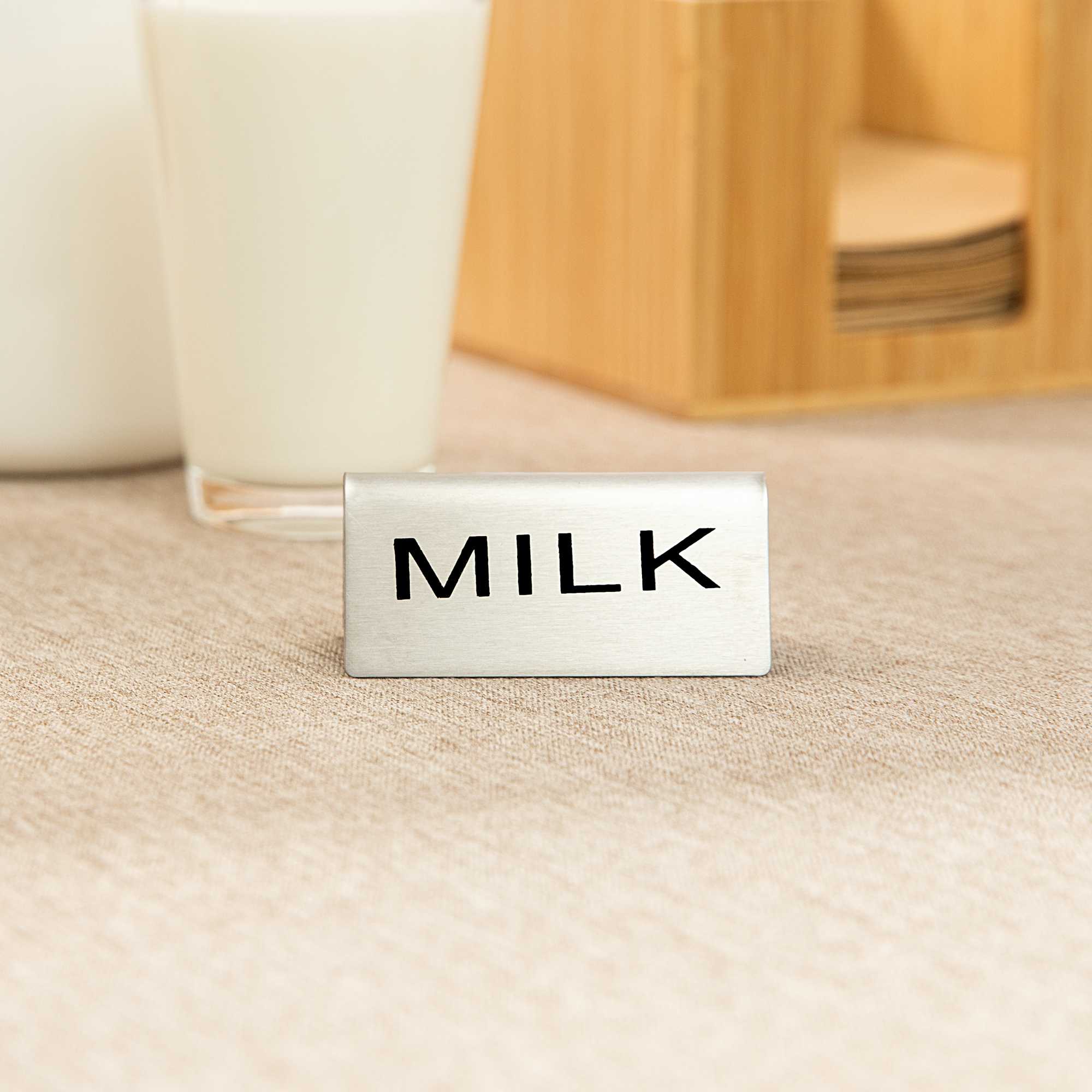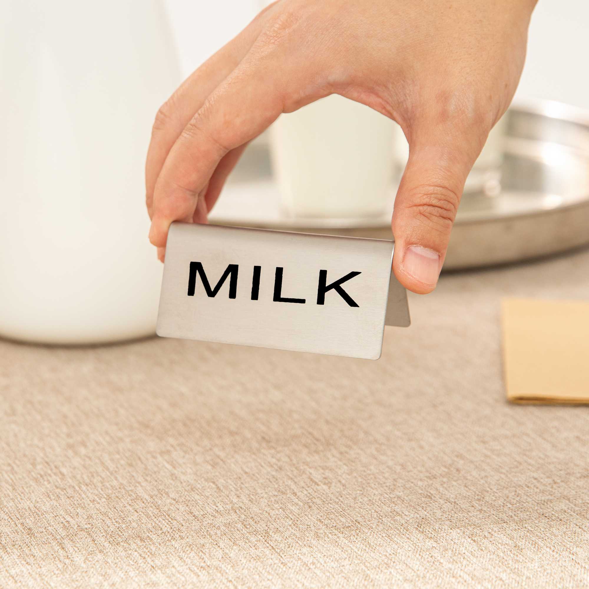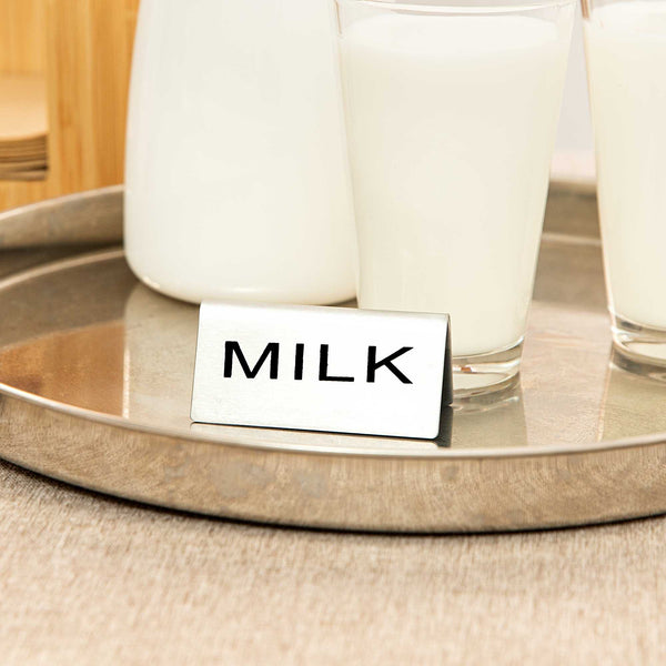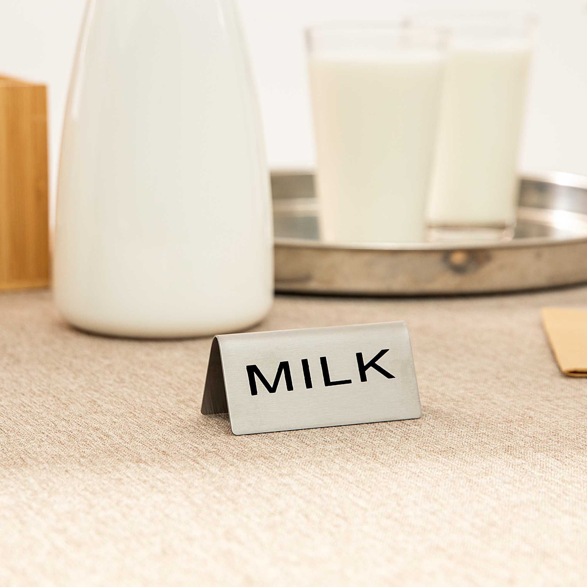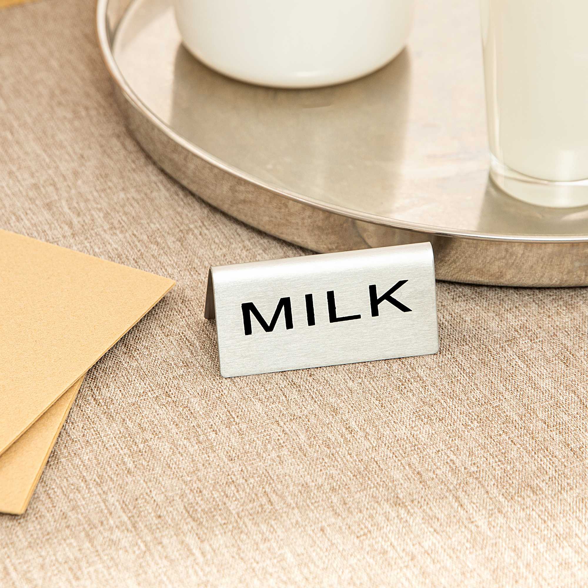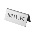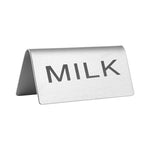 DOUBLE-SIDED STAINLESS STEEL "MILK" TABLE TENT SIGN