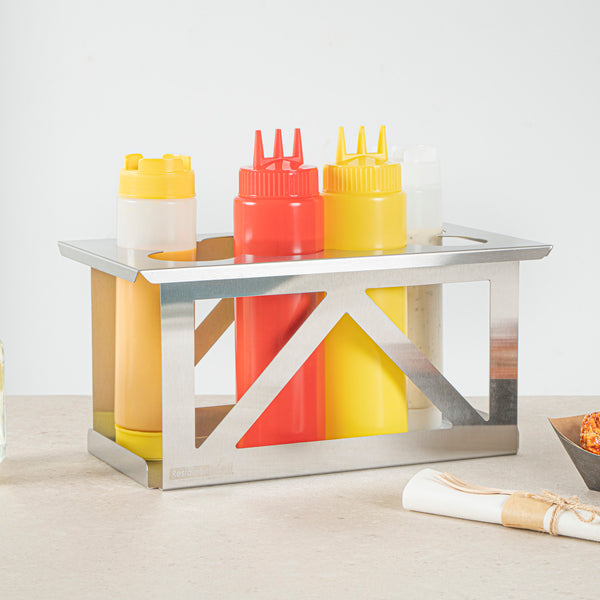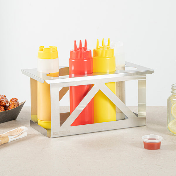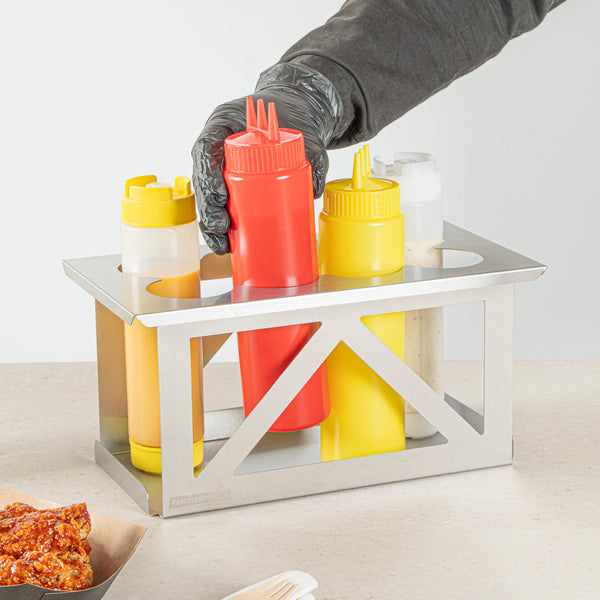 - Holds eight bottles to streamline condiment access in busy kitchens