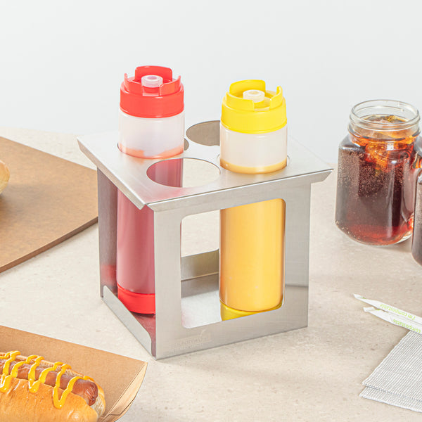 FOUR HOLE STAINLESS STEEL SQUEEZE BOTTLE HOLDER