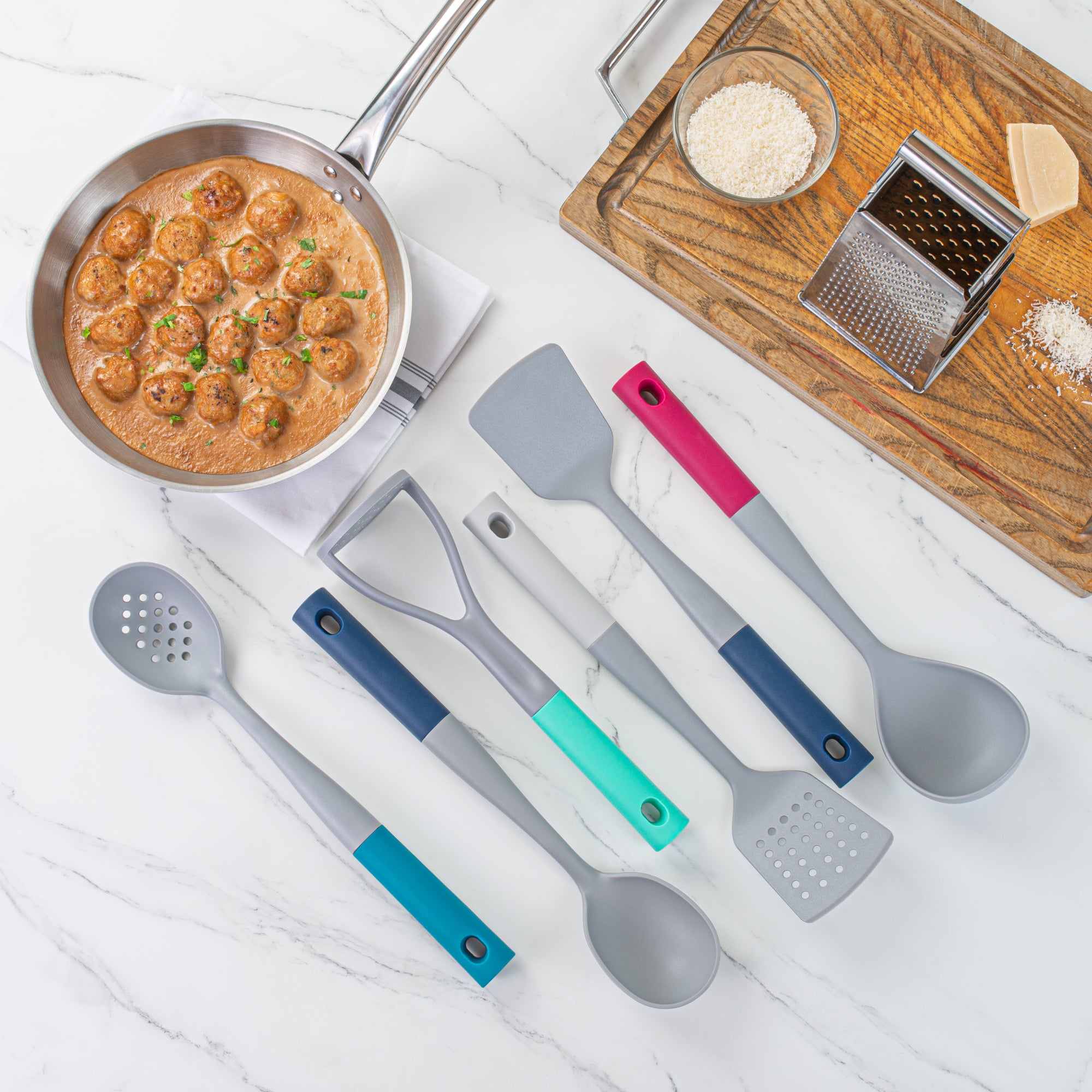 - 6-piece set simplifies multiple cooking tasks
