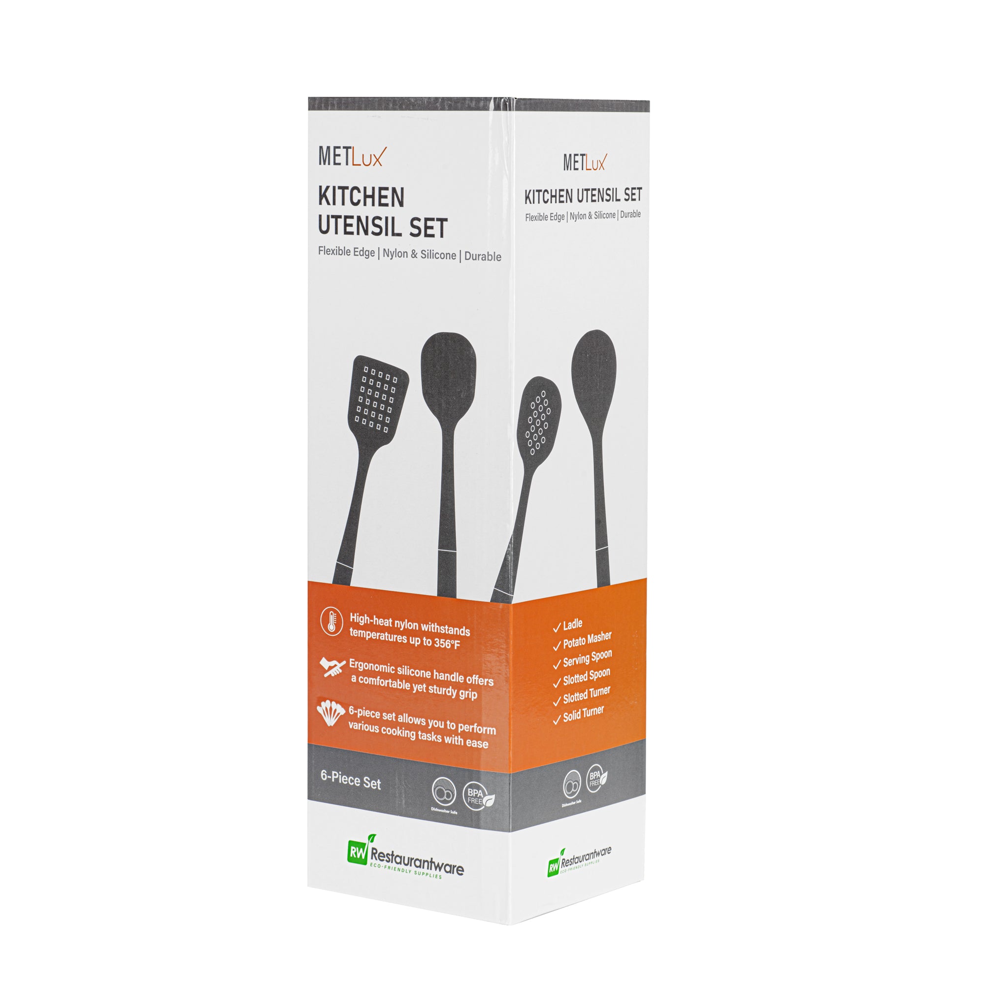This comprehensive 6-piece kitchen utensil set includes a ladle, turner, slotted turner, spoon, slotted spoon, and potato masher, covering a broad range of cooking needs. With these essential tools at your disposal, you can easily tackle a variety of culinary tasks, from stirring and flipping to mashing and serving.