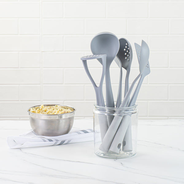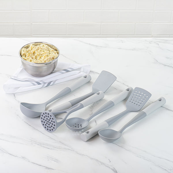 GRAY AND WHITE NYLON HIGH HEAT COOKING UTENSIL SET - 6-PIECE