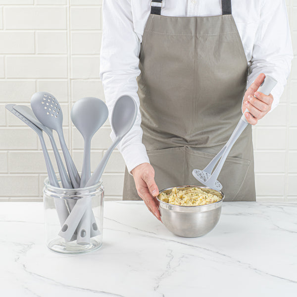 This comprehensive 6-piece kitchen utensil set includes a ladle, turner, slotted turner, spoon, slotted spoon, and potato masher, covering a broad range of cooking needs. With these essential tools at your disposal, you can easily tackle a variety of culinary tasks, from stirring and flipping to mashing and serving.