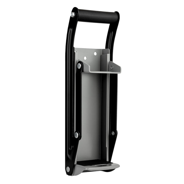 This hand can crusher is available in black, blue, gray, and red. Choose the shade that complements your decor.