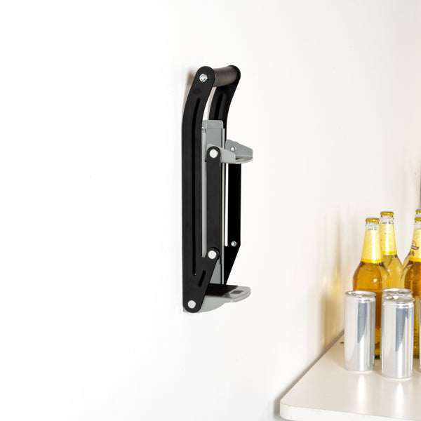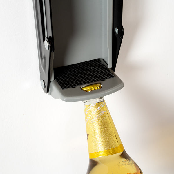Featuring a bottle opener at the base, this mountable can crusher easily opens metal caps from bottles. Pop open beer bottles at your party with ease!