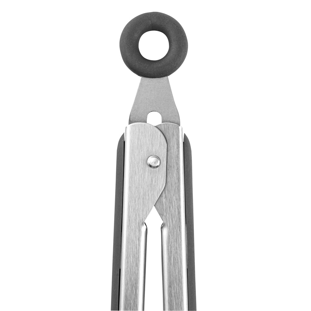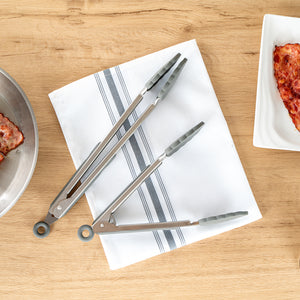 These silicone kitchen tongs feature a stainless steel body with an easy pull lock, making storage a breeze. The sturdy build ensures chores like tossing salad, flipping steaks, and more are managed effortlessly.