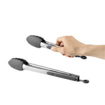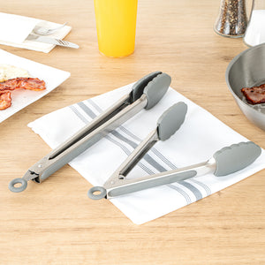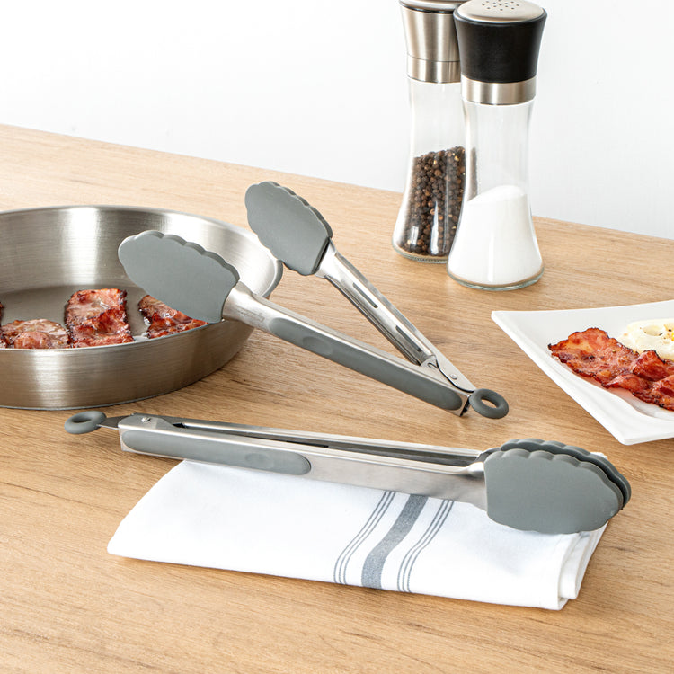 GRAY STAINLESS STEEL 2-PIECE KITCHEN TONG SET - SCALLOPED