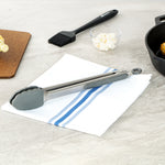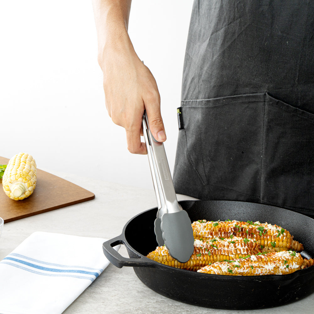 These silicone kitchen tongs feature a stainless steel body with an easy pull lock, making storage a breeze. The sturdy build ensures chores like tossing salad, flipping steaks, and more are managed effortlessly.