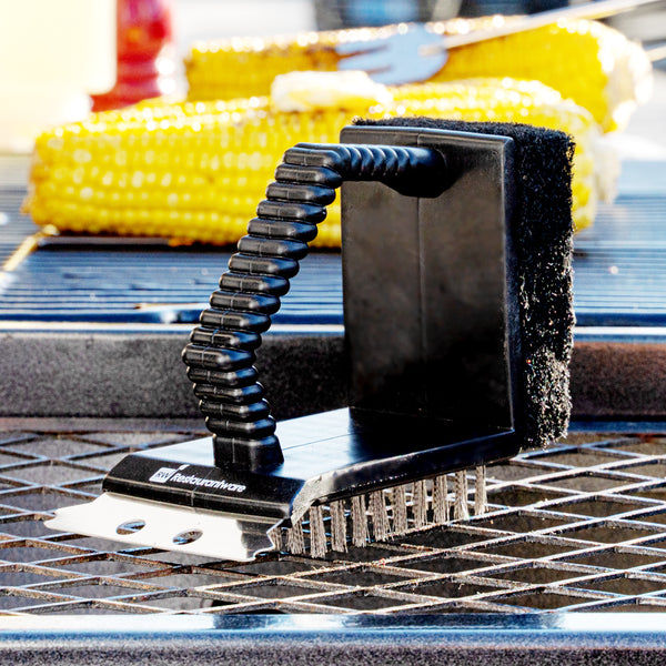 For removing hardened stains or wiping surfaces, these grill cleaning tools are equipped with either a scraper, scouring pad, or both. Deep clean your grill!
