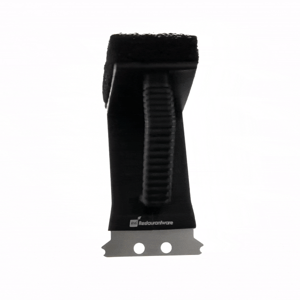 - Sharp scraper effectively cuts through layers of residue without using strenuous force