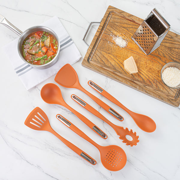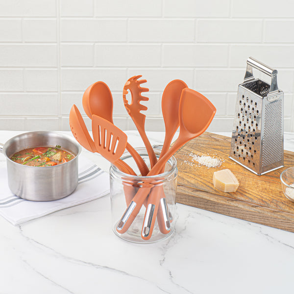 ORANGE SILICONE COOKING UTENSIL SET - 6-PIECE