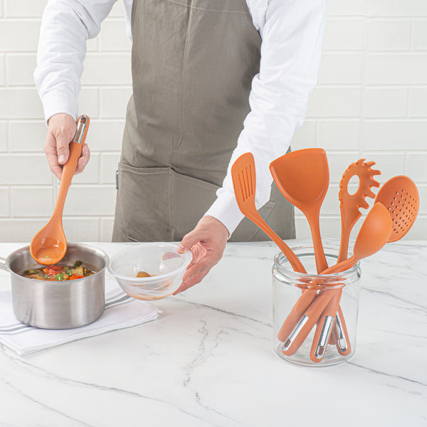 ORANGE SILICONE COOKING UTENSIL SET - 6-PIECE