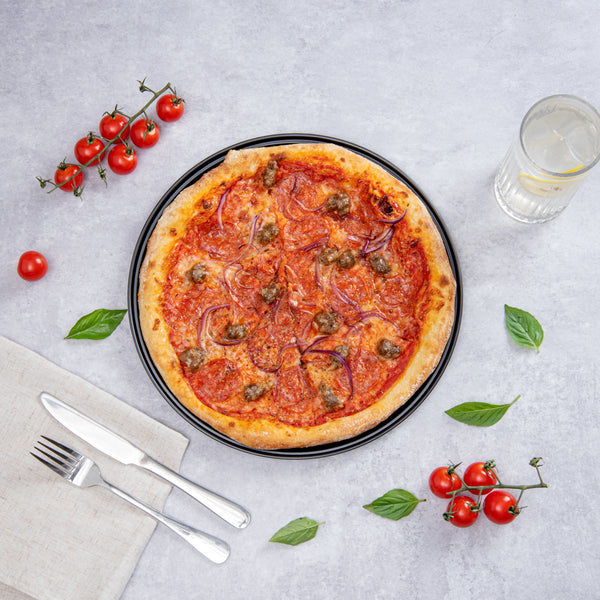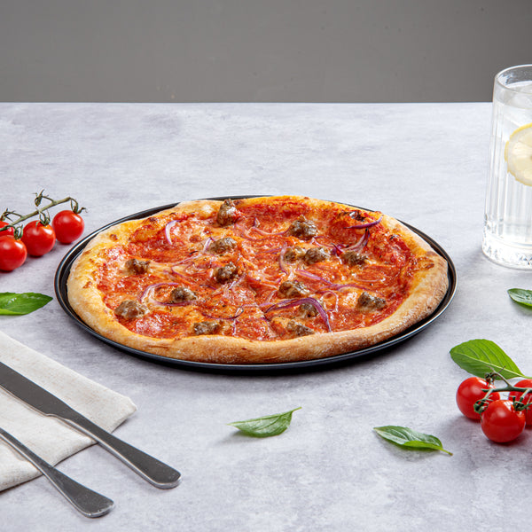 This pizza disk is crafted from heavy-duty black carbon steel for long-lasting use. Avoid needing to re-purchase pizza baking supplies!