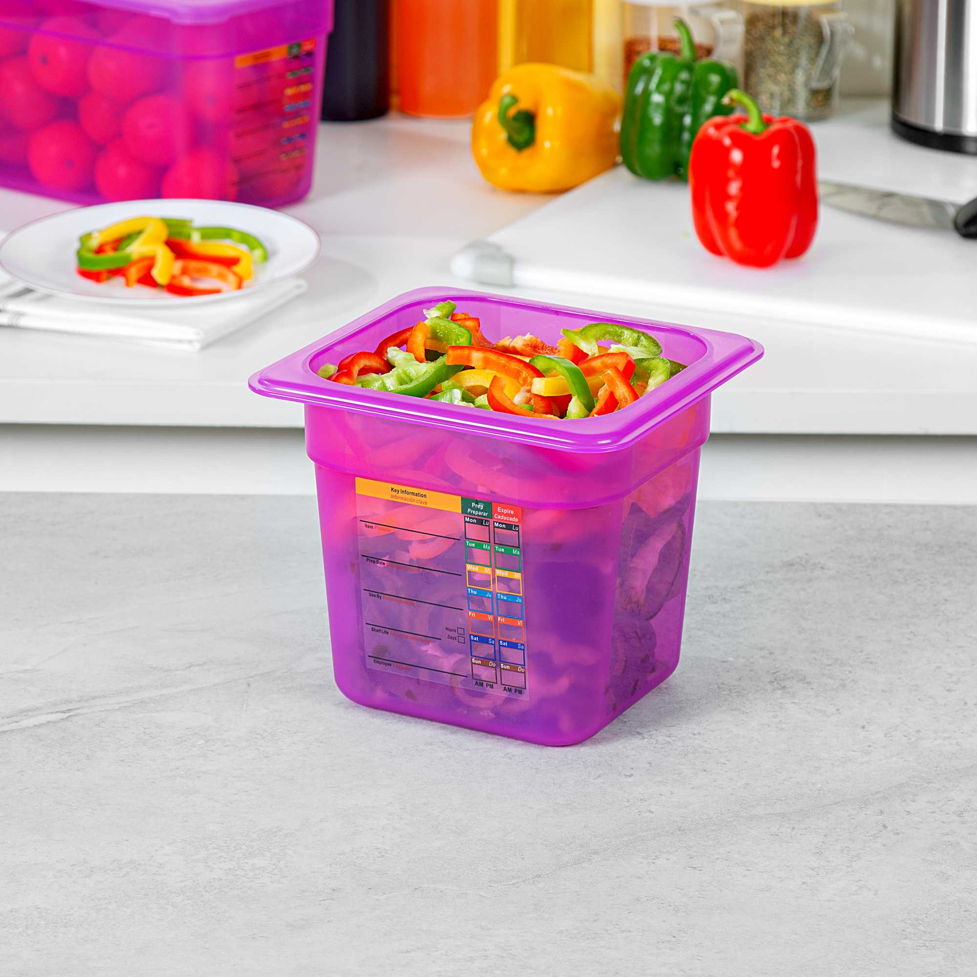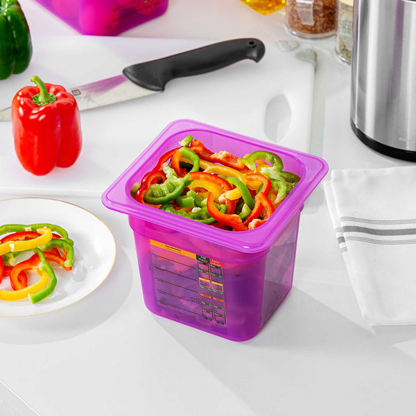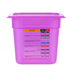 PURPLE ALLERGEN-FREE POLYPROPYLENE 1/6 SIZE FOOD PAN - 6" DEEP