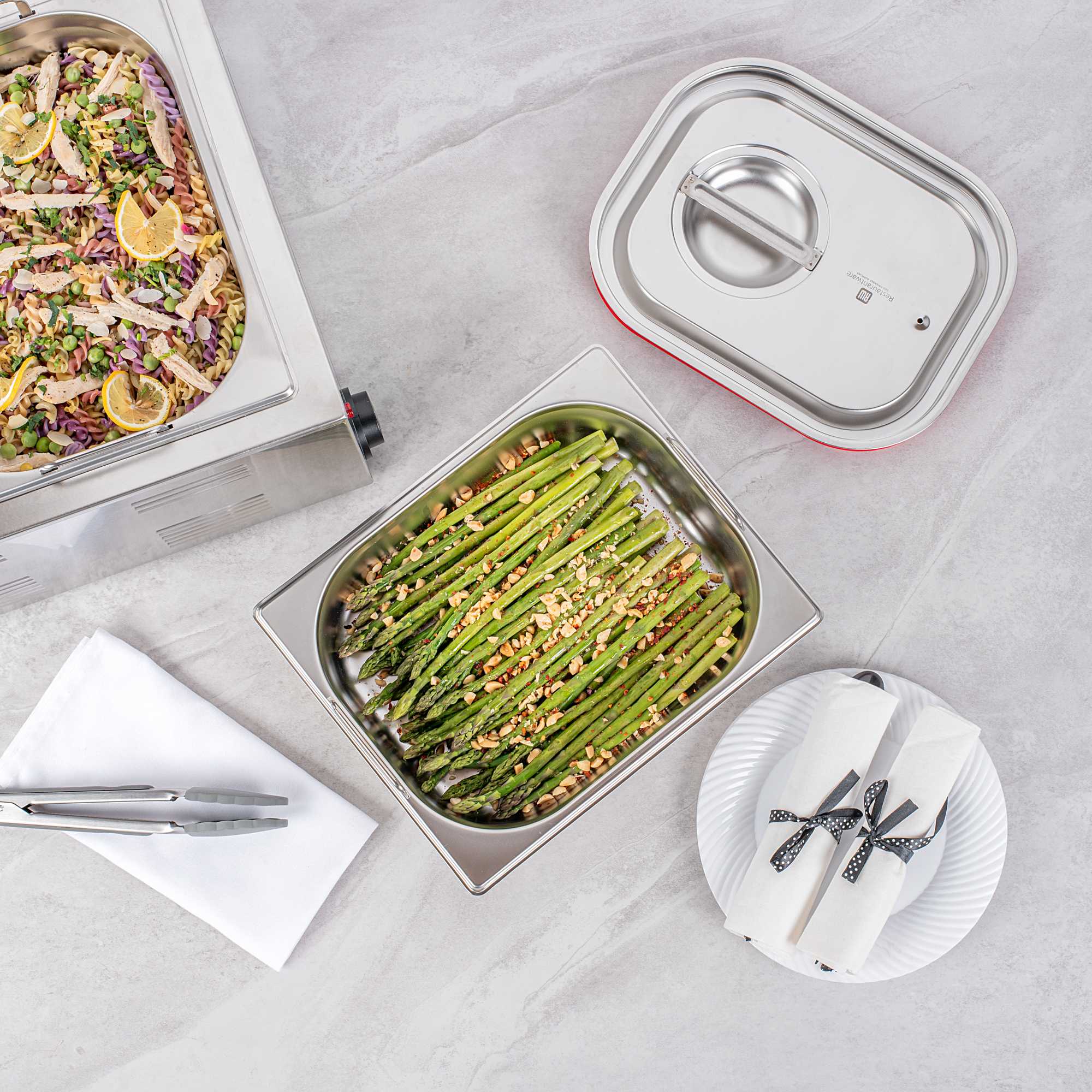 - Collapsible handles make it easy to carry and reload prepared foods in the steam table pans