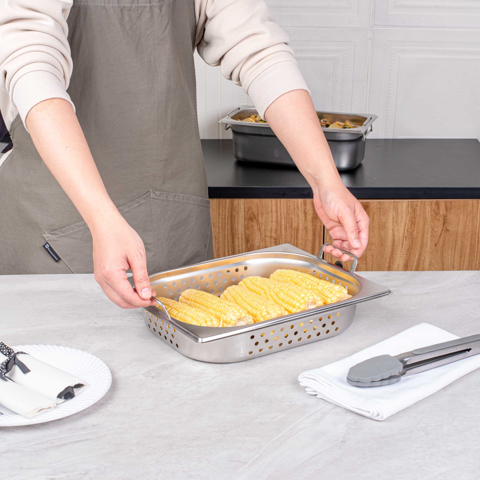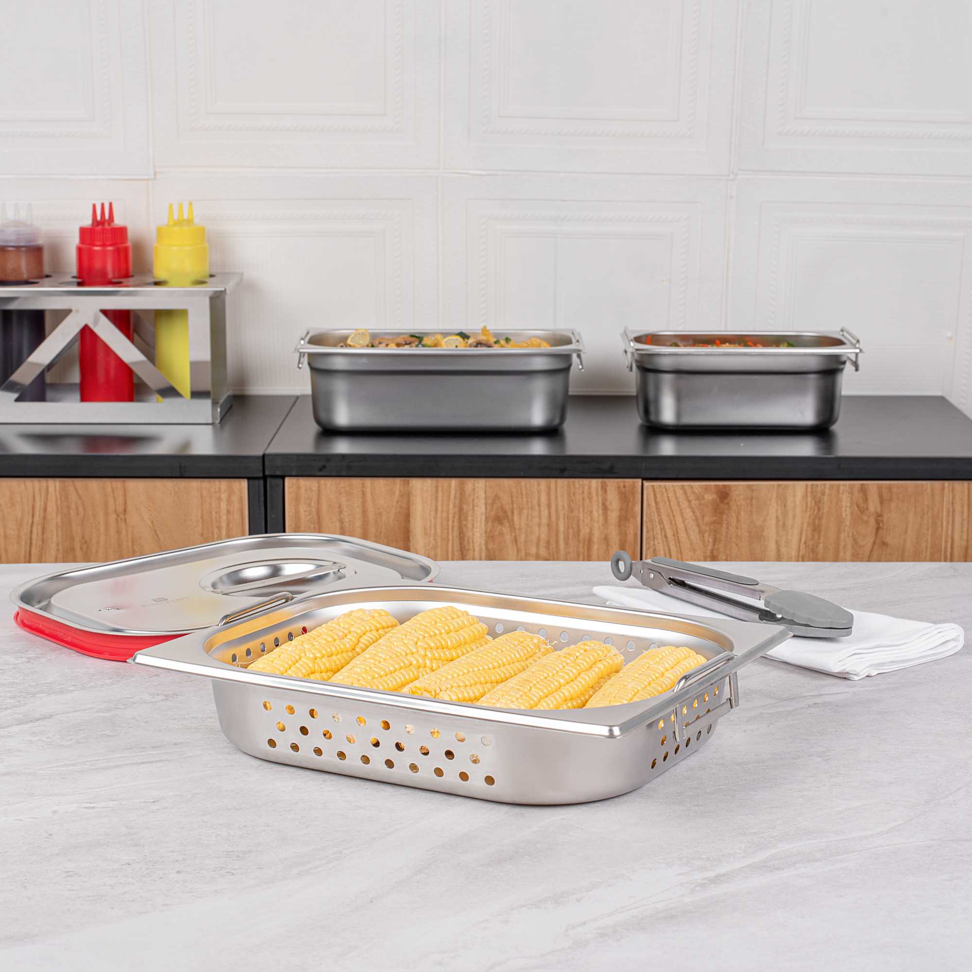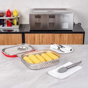 - Collapsible handles make it easy to carry and reload prepared foods in the steam table pans