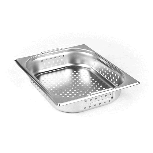 - Perforated holes drain liquids or allow steam to circulate, providing airflow