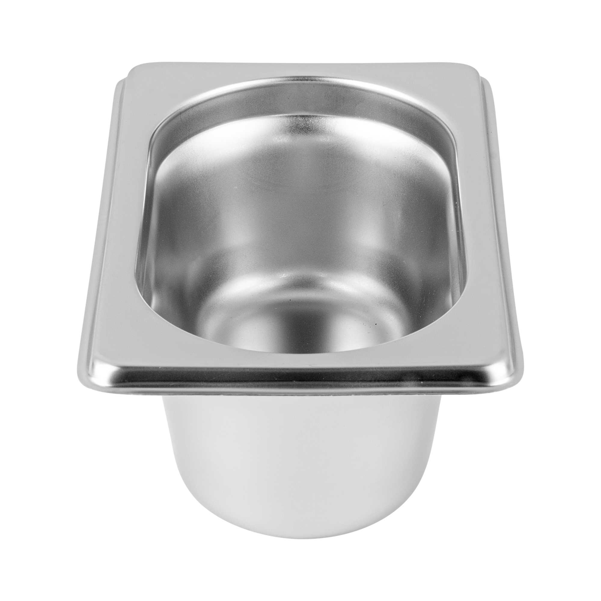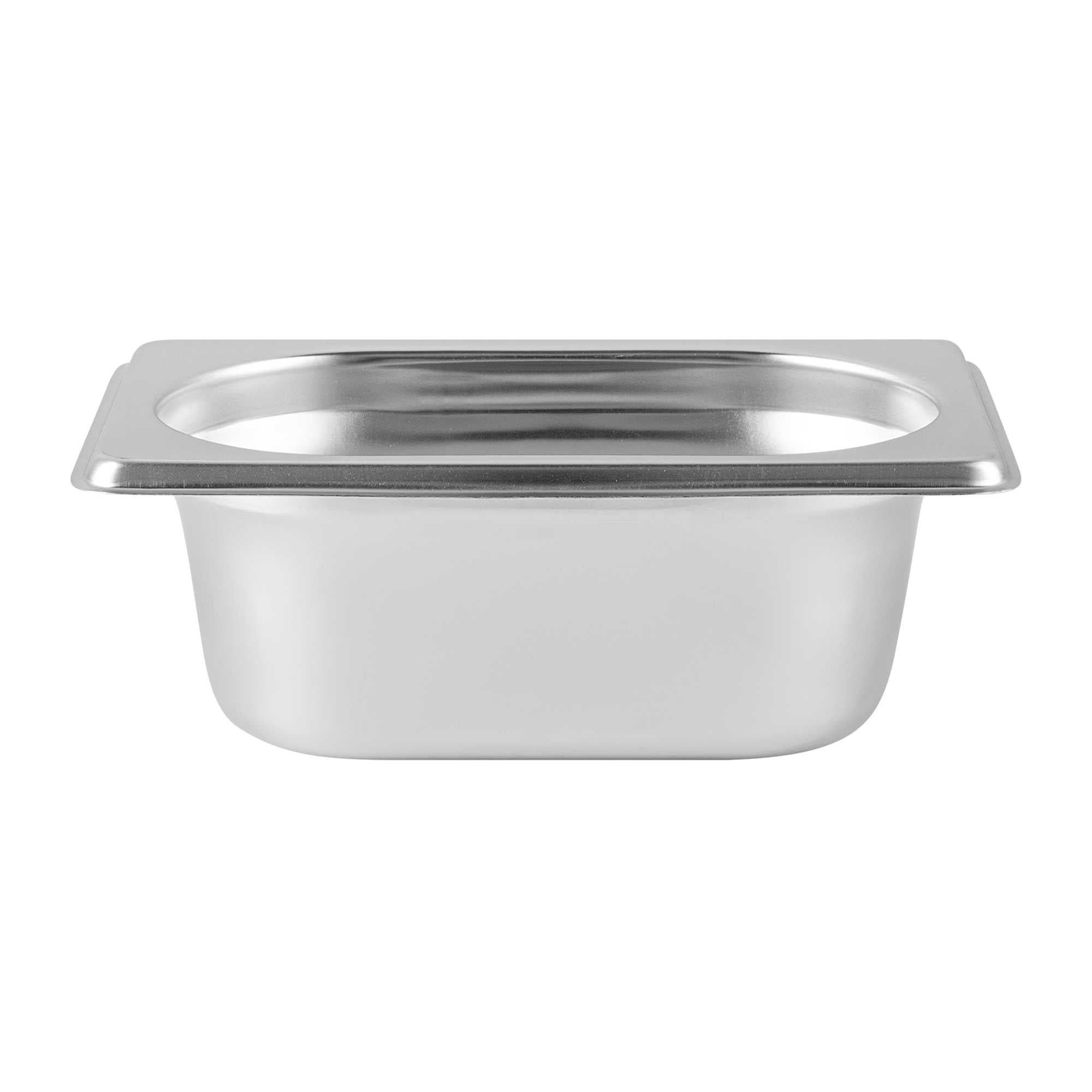 Boost efficiency and streamline service with our Met Lux 1/9 Size Anti-Jam Stainless Steel Steam Table Pans. Featuring a high-quality stainless steel construction, these hotel pans are suitable for use with both cold and hot applications. Their reinforced corners are built to resist warping and breakage, while their impact-resistant stainless steel construction ensures reliable and long-term commercial use. Featuring a unique anti-jamming design, these commercial steam table pans enable easy stacking and hassle-free storage. These 1/9 hotel pans are 2.5 inches deep and perfect for storing or warming small portions of sauces, side dishes, desserts, and more. Pair these stainless steel steam table pans with lids (SKU: RWT0050) to complete the look! Lids sold separately. Each order will contain one 7-inch L x 4.3-inch W x 2.5-inch H hotel pan.
