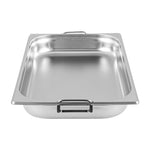 - Collapsible handles make it easy to carry and reload prepared foods in the steam table pans