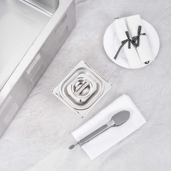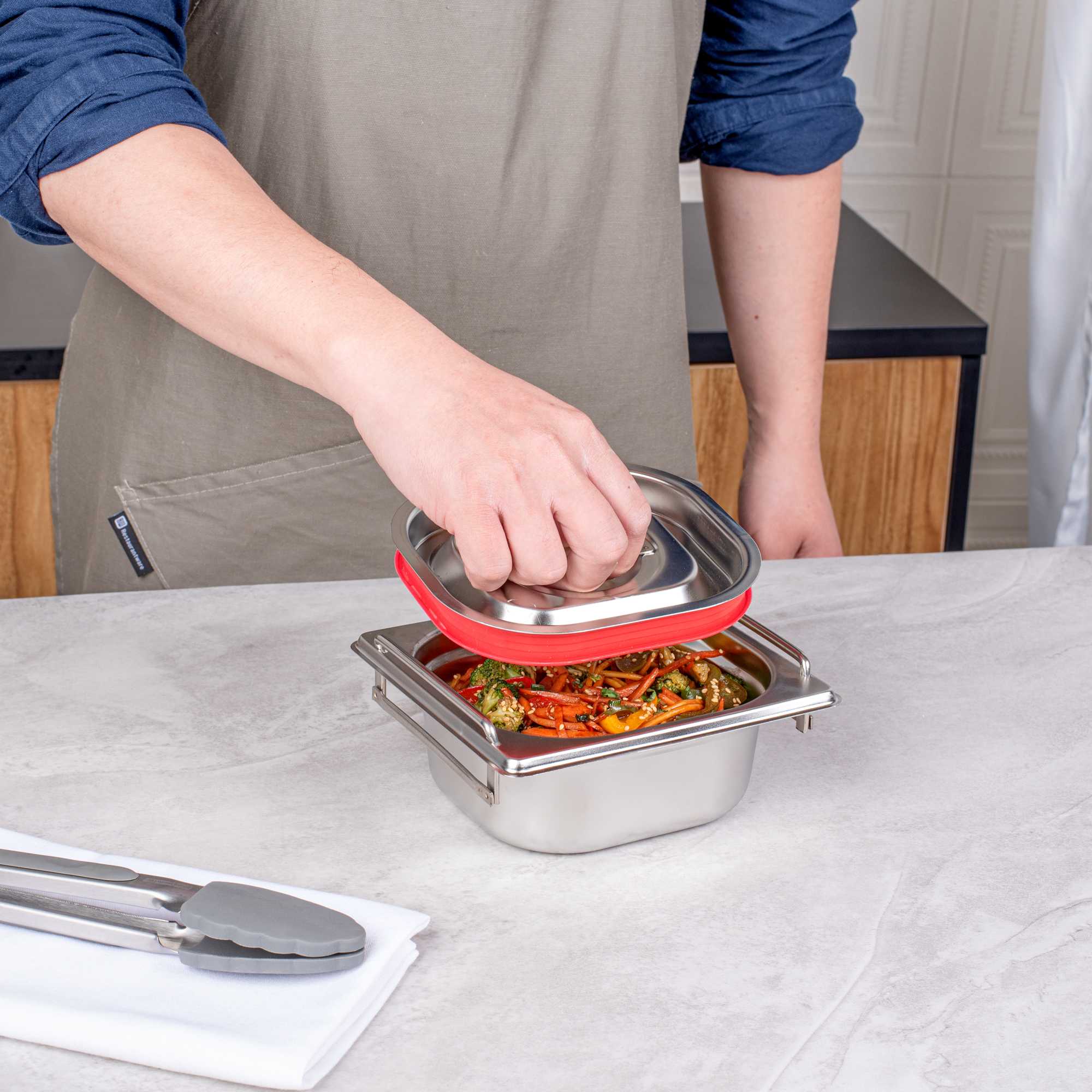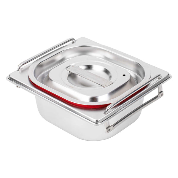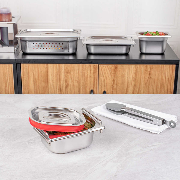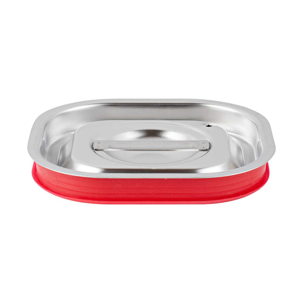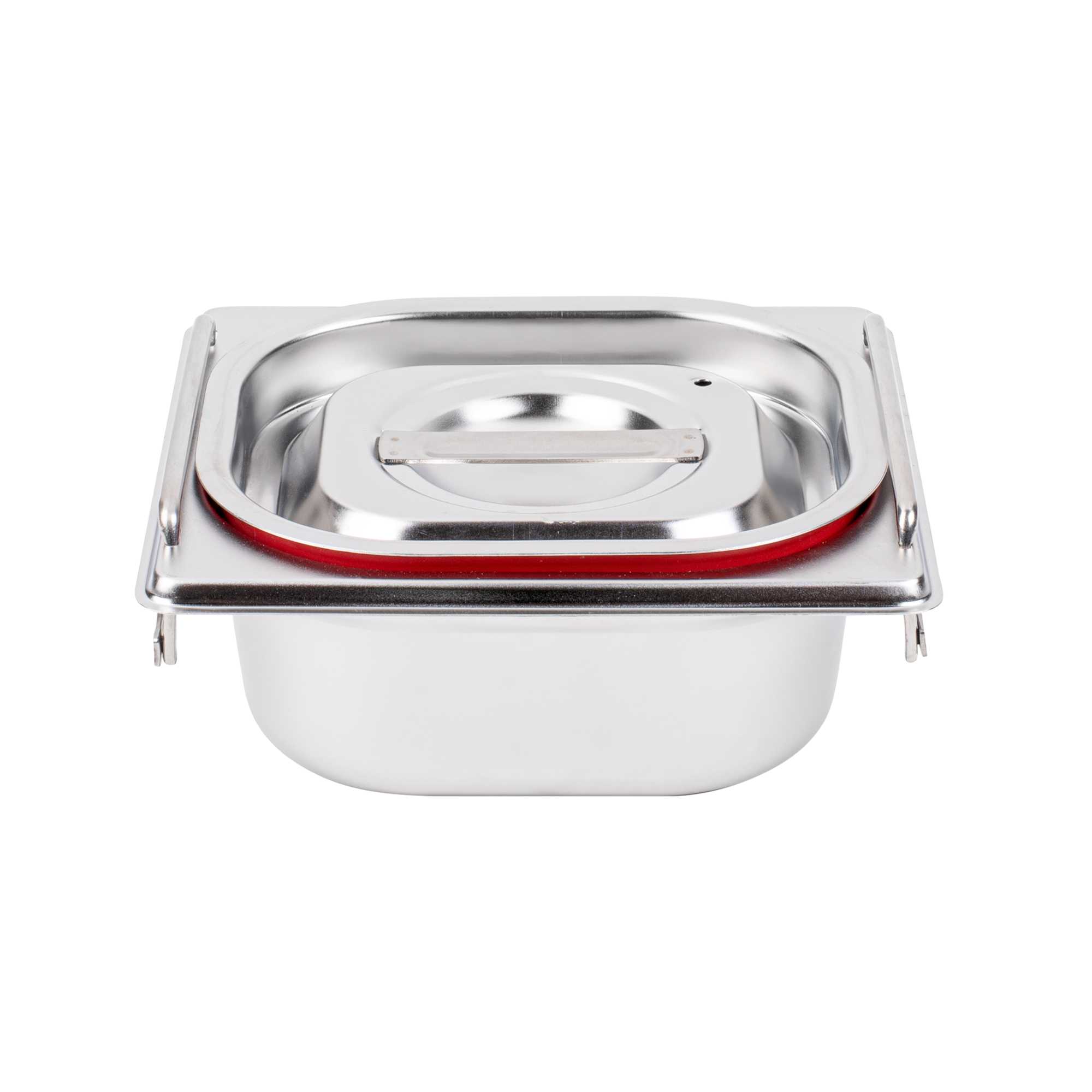 Make catered foods instantly portable with our innovative stainless steel Met Lux 1/6 Size Steam Table Pan Travel Lid. Equipped with a built-in silicone seal, this steam table pan lid forms a spill-resistant seal on our coordinating steam table pans to reduce mess and keep foods warm. This impact-resistant steam table pan cover is constructed from high-quality stainless steel and designed to withstand long-term commercial use by busy restaurants and catering companies. Pair our selection of Met Lux 1/6 Size Steam Pans with lids to create a quick and easy serving solution for off-site catering events, food trucks, hotel buffet services, and more. Coordinating steam table pans (such as SKU: RWT0042) are sold separately. The stainless steel lid is shipped in a 1 count box.