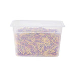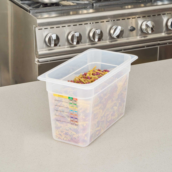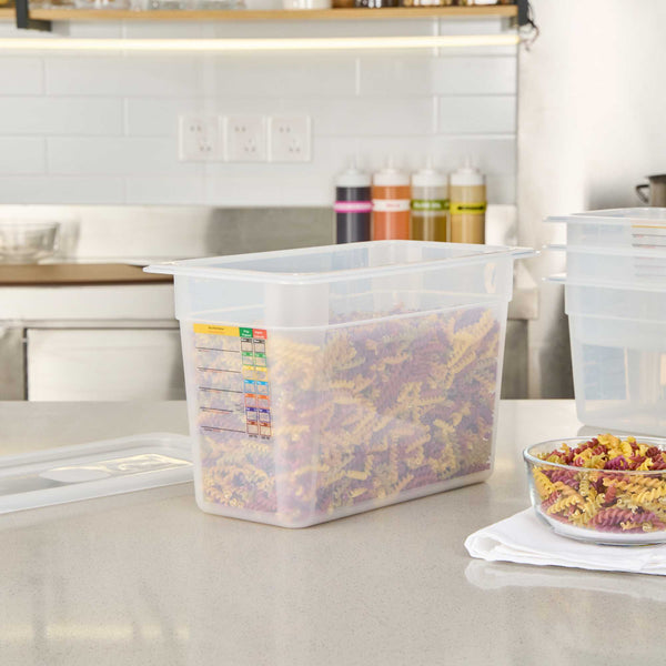 Maximize your kitchen efficiency with versatile food storage solutions. The Met Lux Built-In Label Plastic Food Container offers a streamlined design that features a built-in label, allowing you to document food type, date, and use-by details, reducing disposable label waste and enhancing your operation's sustainability. This plastic food container features a shape that maximizes storage space by 25 percent, ensuring you can efficiently organize your kitchen. Designed with temperature resilience, it withstands temperatures from -40 to 203 degrees Fahrenheit, making it ideal for safe hot and cold storage. Its flexible polypropylene material is stain-resistant and dishwasher safe, providing the durability you need for daily use in busy kitchens. The stackable food storage design allows for convenient and compact stacking, optimizing shelf space. Trust this reusable food storage container to support your foodservice needs. Each order includes 1 Met Lux Built-In Label Plastic Food Container.