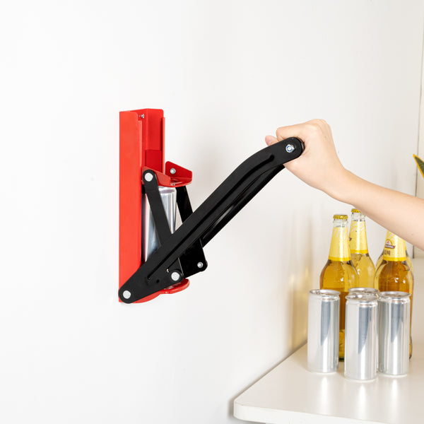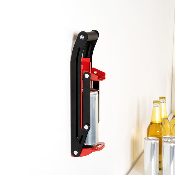 RED METAL CAN CRUSHER - FOR 12 / 16 OZ CANS, WALL MOUNT