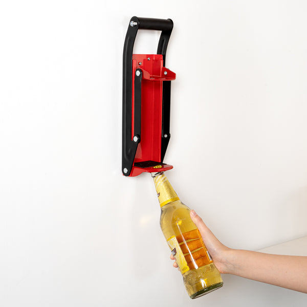 Featuring a bottle opener at the base, this mountable can crusher easily opens metal caps from bottles. Pop open beer bottles at your party with ease!