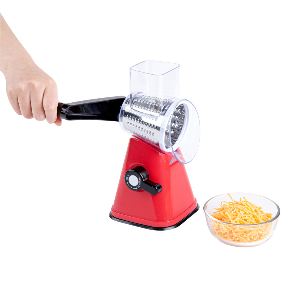 RED ROTARY CHEESE / VEGETABLE GRATER - WITH 3 BLADES