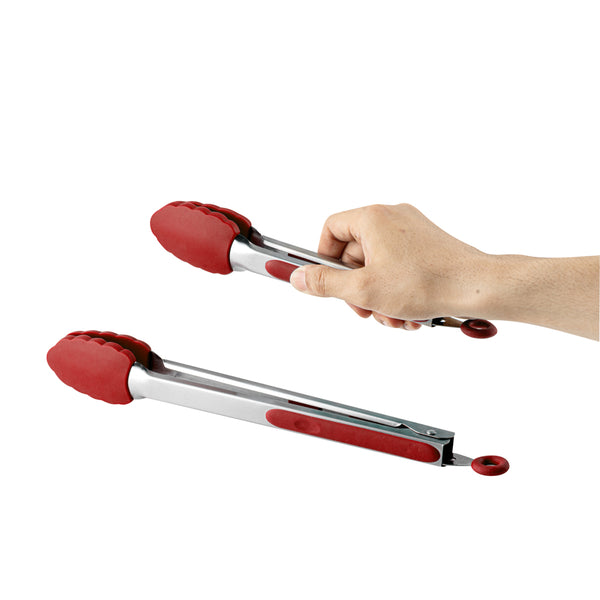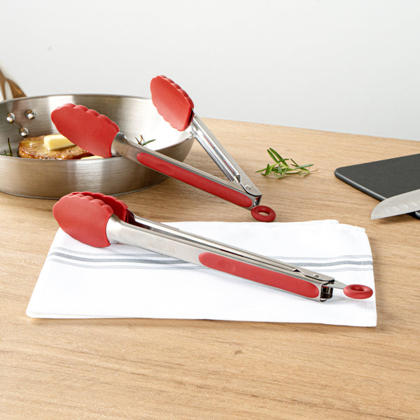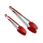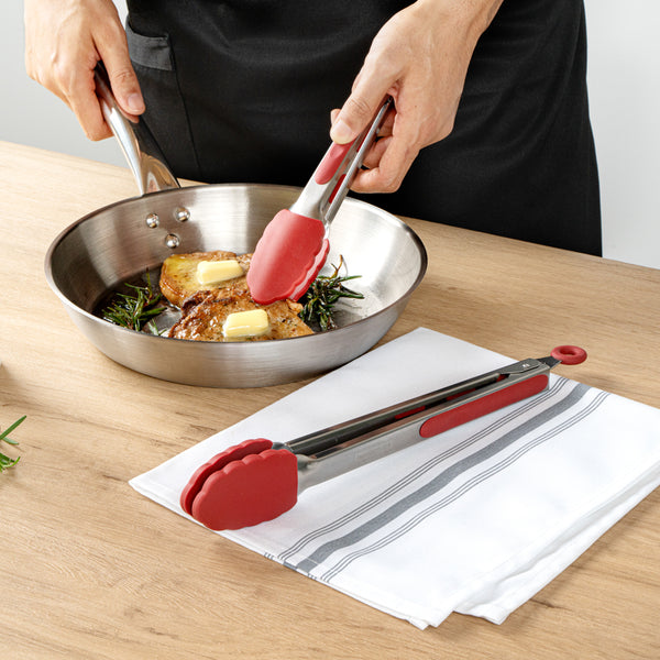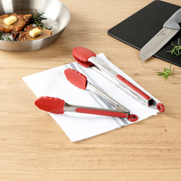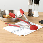 RED STAINLESS STEEL 2-PIECE KITCHEN TONG SET - SCALLOPED