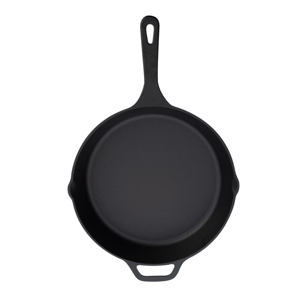 ROUND BLACK CAST IRON 12" FRY PAN - PRE-SEASONED