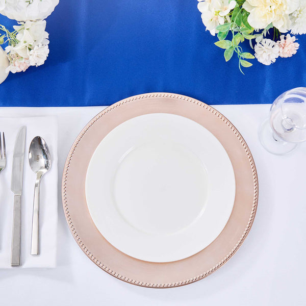 ROUND ROSE GOLD BEADED RIM PLASTIC CHARGER PLATE