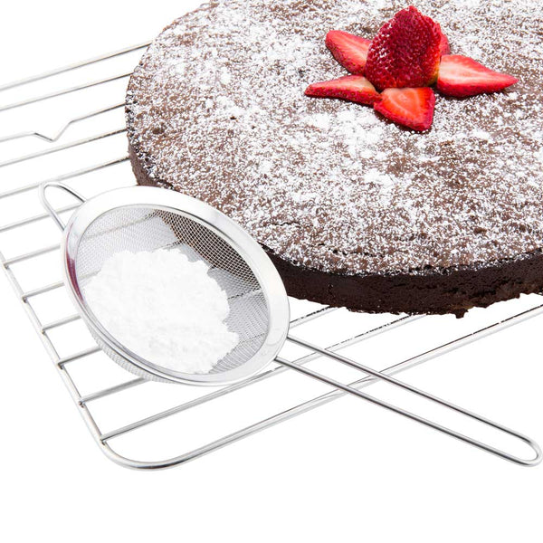 Easily drain excess liquid from cooked pasta and steamed vegetables, or successfully sift sauces, gravies, flour, grains, powdered sugar or other ingredients with precision with this 10 inch mesh strainer from Restaurantware. Constructed with premium stainless steel, this mesh strainer is built with a long wire handle for easy straining, and designed to sit atop pots for when hands-free sifting is needed. For clean, uncluttered, precise sifting, our Met Lux 10 Inch Mesh Strainer is a must-have kitchen tool. You will receive one mesh strainer per order.