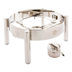 The stainless steel construction on this Met Lux 6 Quart Round Induction Ready Chafer stand provides durability, dependability, and versatility. Built to be used with our Met Lux Induction Warming Unit, or with traditional chafing fuel, this straight-leg stand is sturdy and easy to carry and load. Ideal for wedding receptions, banquets, buffets, and other catered galas, this stand is built to fit our Met Lux 6 Quart Round Induction Ready Chafer. Each Met Lux Straight Leg Stainless Steel Stand for 6 Quart Round Induction Ready Chafer measures 17.5 inches in circumference, 9 inches in height, and is shipped in a 1 count box. Chafer sold separately.