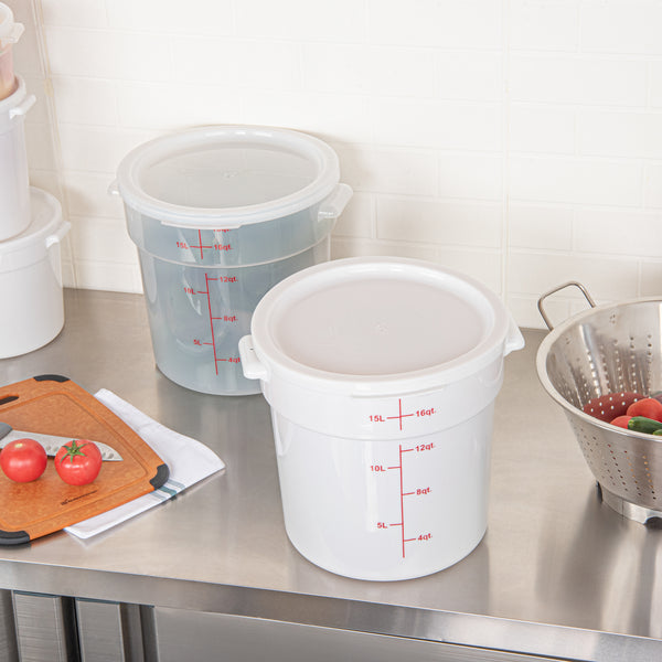 Upgrade your kitchen storage solutions with our Met Lux Round White Plastic Food Storage Container Lid. Made of durable plastic, this food container lid is designed to withstand heavy-duty use, ensuring longevity and reliability in a busy foodservice environment. Fitting seamlessly onto our Met Lux 12, 18, and 22 quarts containers, this round container lid provides versatile utility, helping you maximize your kitchen resources. This storage container lid enhances organization and storage by keeping contents neatly contained and well-organized. The pull-corner tab on this plastic container lid allows for easy removal, averting unnecessary struggles during your fast-paced kitchen operations. Measuring 12.5 inches in diameter, this round container lid is compact yet efficient, perfectly fitting your storage needs. Plus, this storage container lid is also dishwashable, making cleaning a breeze. Sold in a 1 count box. Storage container is available and sold separately.