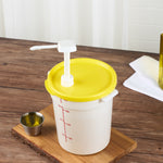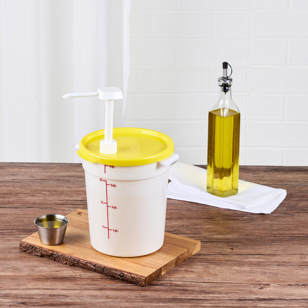 Enhance your food storage solutions with our Met Lux Round Yellow Plastic Lid. These round lids are made from durable pp plastic to ensure long-lasting use. Designed to fit a 4-quart food storage container, this food storage container lid provides a reliable seal. These lids come equipped with a pre-cut hole to perfectly fit pump dispensers. Featuring an easy-to-read date indicator, these lids help maintain proper food rotation and freshness. The bright yellow color-coded design of these durable plastic lids allows for quick identification in busy kitchens. This airtight lid measures 7.25 inches in length by 7.25 inches in width, ensuring a snug fit with your containers. Sold in a 1 count box.