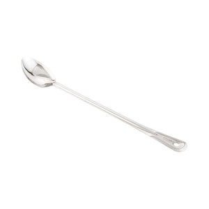 Precisely and efficiently prepare your dishes with this Met Lux Professional Solid Serving Spoon. Featuring a total length of 18 inches, these large serving spoons are equipped with conveniently extended handles and are suitable for use with any stockpot or buffet serving tray. Their deeply grooved handles enable comfortable high-volume usage, while their solid-bowl design stirs and serves sauces, side dishes, or entrees with ease. Constructed from high-quality stainless steel, this basting spoon is incredibly durable and heat-resistant. These stainless steel serving spoons are designed with a beautifully polished finish that looks great in both the back-of-house and front-of-house. Ideal for restaurants, buffets, and catering companies, these stainless steel serving utensils have a built-in hole for easy and sanitary hanging storage. Shipped in a 1 count box.