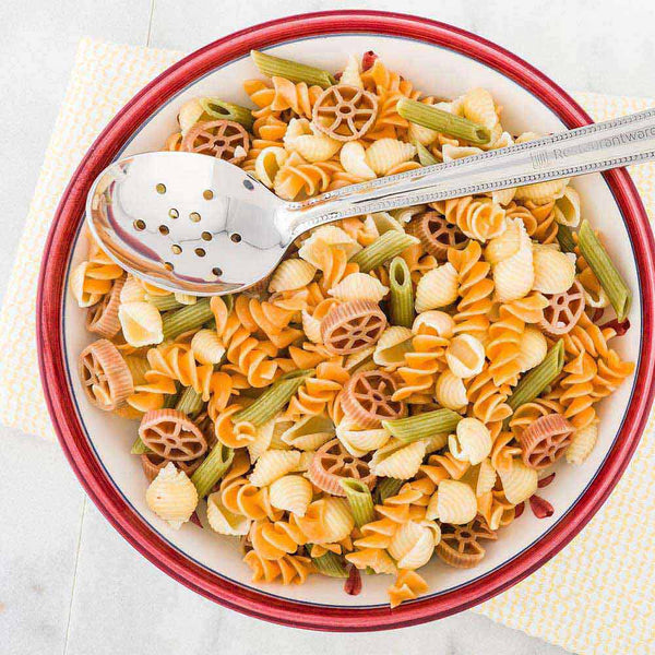 - Perforated design allows for quick scooping, draining, and serving of food