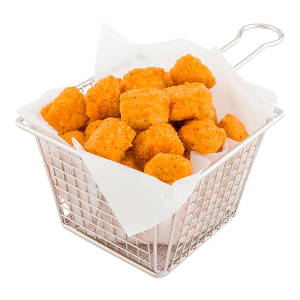 Impress your guests with our Met Lux Square Silver Stainless Steel Large Mini Fryer Basket. Constructed using tough stainless steel, this French fry basket is a blend of resilience and reusability, making it compatible with various food forms. The waffle grid of this mini fryer basket adds a stylish touch to your presentation. Plus, the substantial rim of this wire serving basket effectively minimizes any accidental overspills, securing the contents within the basket. Tailored for all kinds of commercial usage, this easy-to-clean and greaseproof fry basket ensures handling hot fries becomes a breeze. The built-in handle of this silver fry basket prioritizes security when delivering your mouth watering dishes. With a size of 8 inches in length by 5 inches in width by 3.5 inches in height, this recyclable fryer basket with waffle grid effortlessly sophisticates your foodservice. Shipped in a 1 count box.
