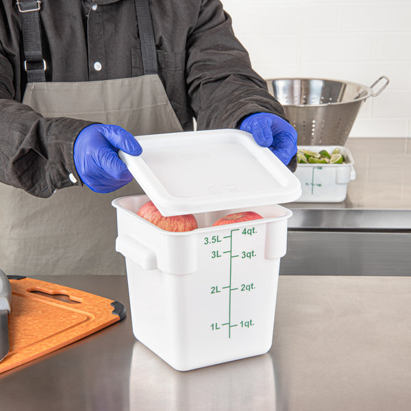 Keep your food fresh and secure with our Met Lux Square White Plastic Food Storage Container Lids. These food container lids, made from durable plastic, are designed to withstand frequent use in any high-volume kitchen or food service establishment. Perfectly fitting 2 and 4 quarts containers, these container lids are versatile and functional, ensuring a snug seal for a variety of food storage needs. These round container lids facilitate efficient storage and organization by keeping contents securely in place and neatly stored. Featuring a pull-corner tab, these storage container lids make opening and closing a breeze, reducing the risk of spills or messes. These lids are dishwashable, making clean-up quick and easy. Measuring 7.5 inches in length by 7.5 inches in width, these food storage container lids are compact and easy to store, making them a perfect addition to any kitchen space. Sold in a 10 count box. Storage containers are available and sold separately.