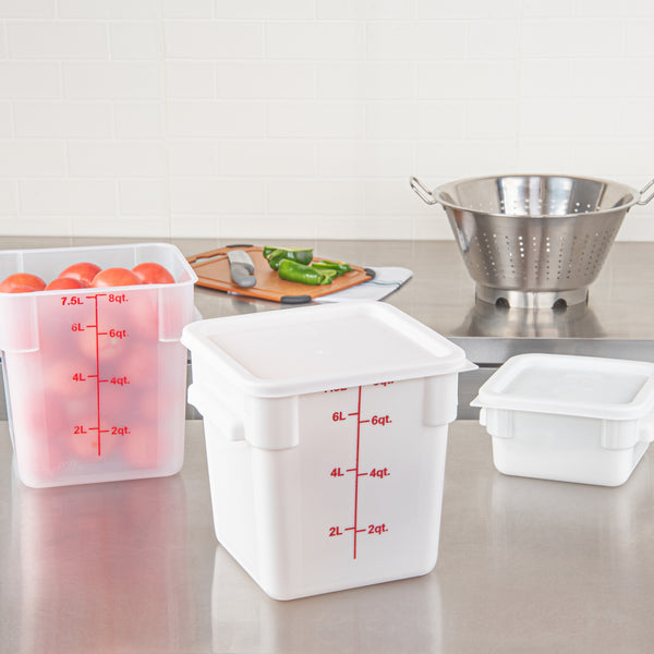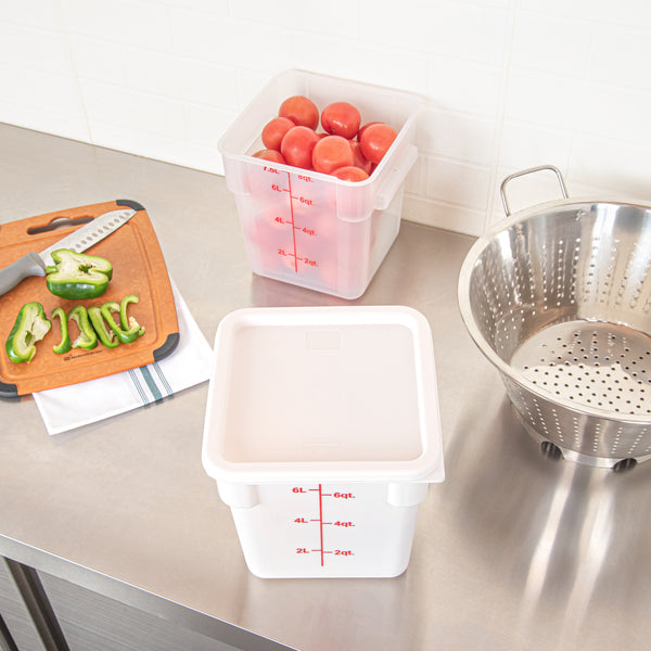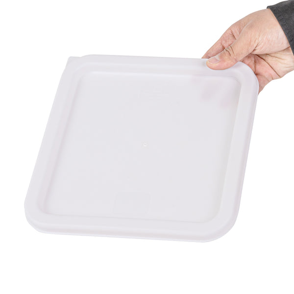 Preserve the freshness of your food item with our Met Lux Square White Plastic Food Storage Container Lid. Designed to fit snugly on a 6 or 8 quarts container, this food container lid offers tailored solutions to meet your various food storage needs. Crafted from durable plastic, the storage container lid is built to withstand daily use in a busy kitchen. This round lid facilitates organization and storage by securely containing contents and keeping them well-arranged. Featuring a pull-corner tab, this storage container lid is easy to remove without making a mess. Plus, this plastic container lid is dishwashable, ensuring quick and easy clean-up. Measuring 9 inches in length by 9 inches in width, this square container lid offers ample coverage for food storage needs. Sold in a 1 count box. Storage container is available and sold separately.