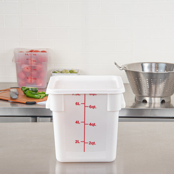 Preserve the freshness of your food items with our Met Lux Square White Plastic Food Storage Container Lids. Designed to fit snugly on 6 and 8 quarts containers, these food container lids offer tailored solutions to meet your various food storage needs. Crafted from durable plastic, the storage container lids are built to withstand daily use in busy kitchens. These round lids facilitate organization and storage by securely containing contents and keeping them well-arranged. Featuring a pull-corner tab, these storage container lids are easy to remove without making a mess. Plus, these plastic container lids are dishwashable, ensuring quick and easy clean-up. Measuring 9 inches in length by 9 inches in width, these square container lids offer ample coverage for food storage needs. Sold in a 10 count box. Storage containers are available and sold separately.