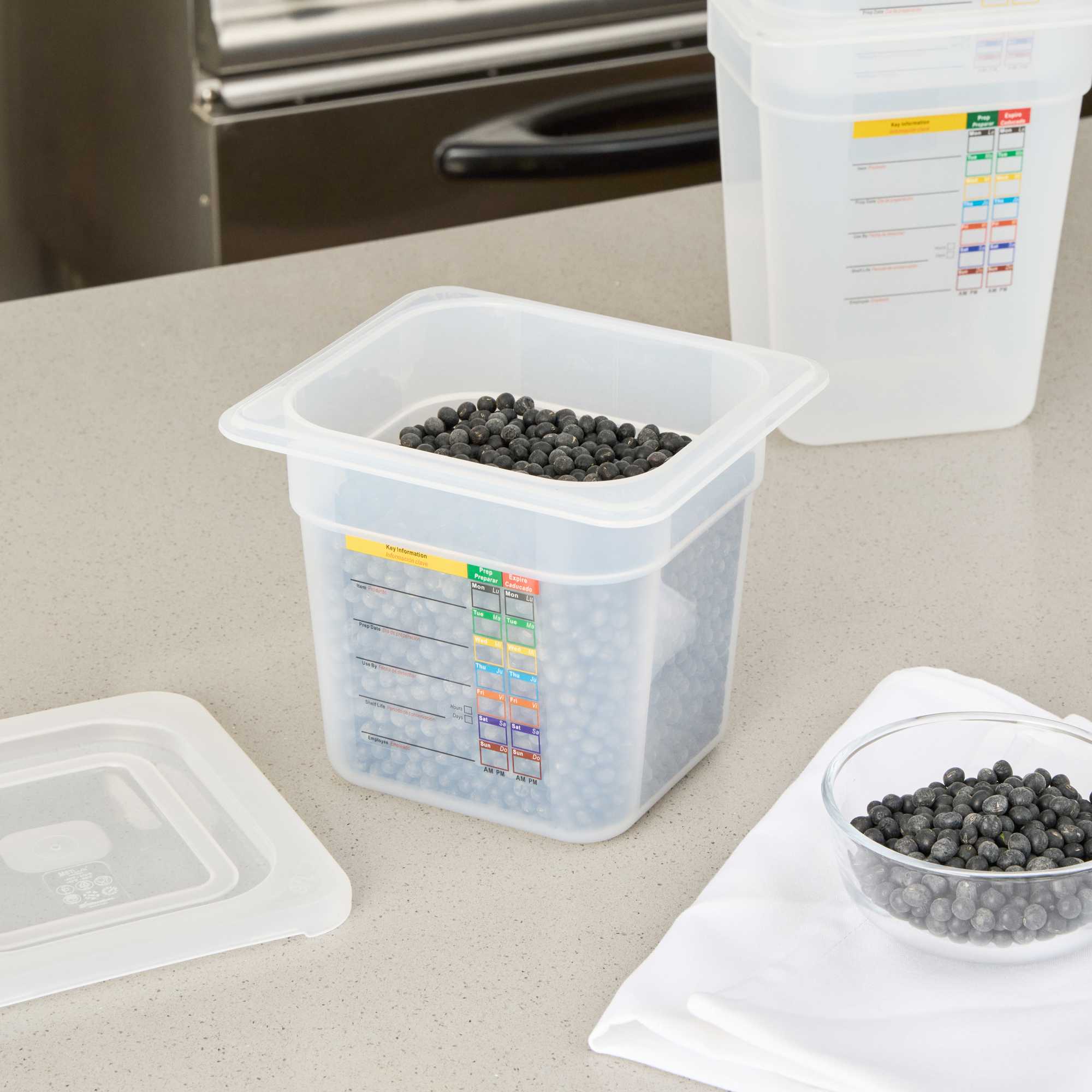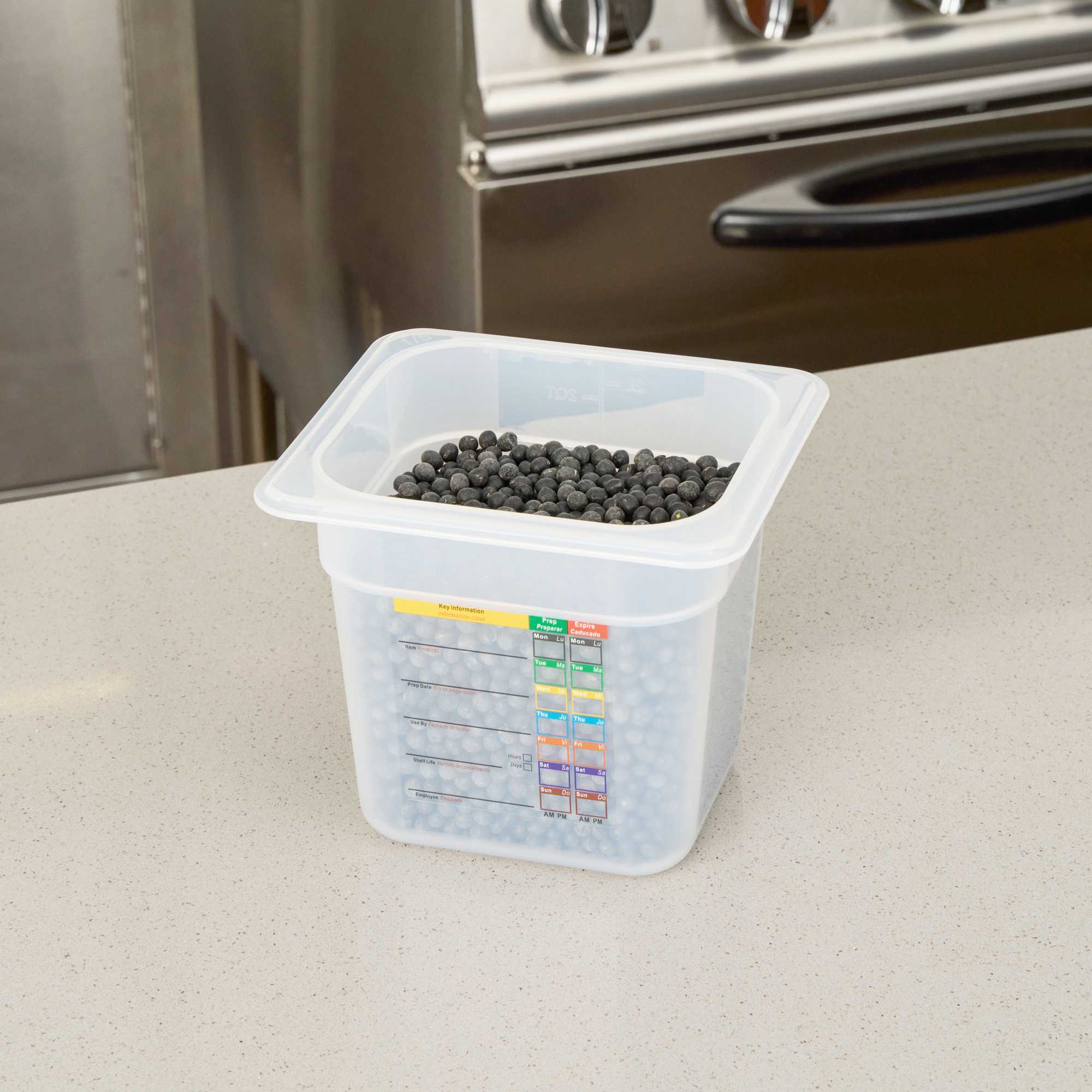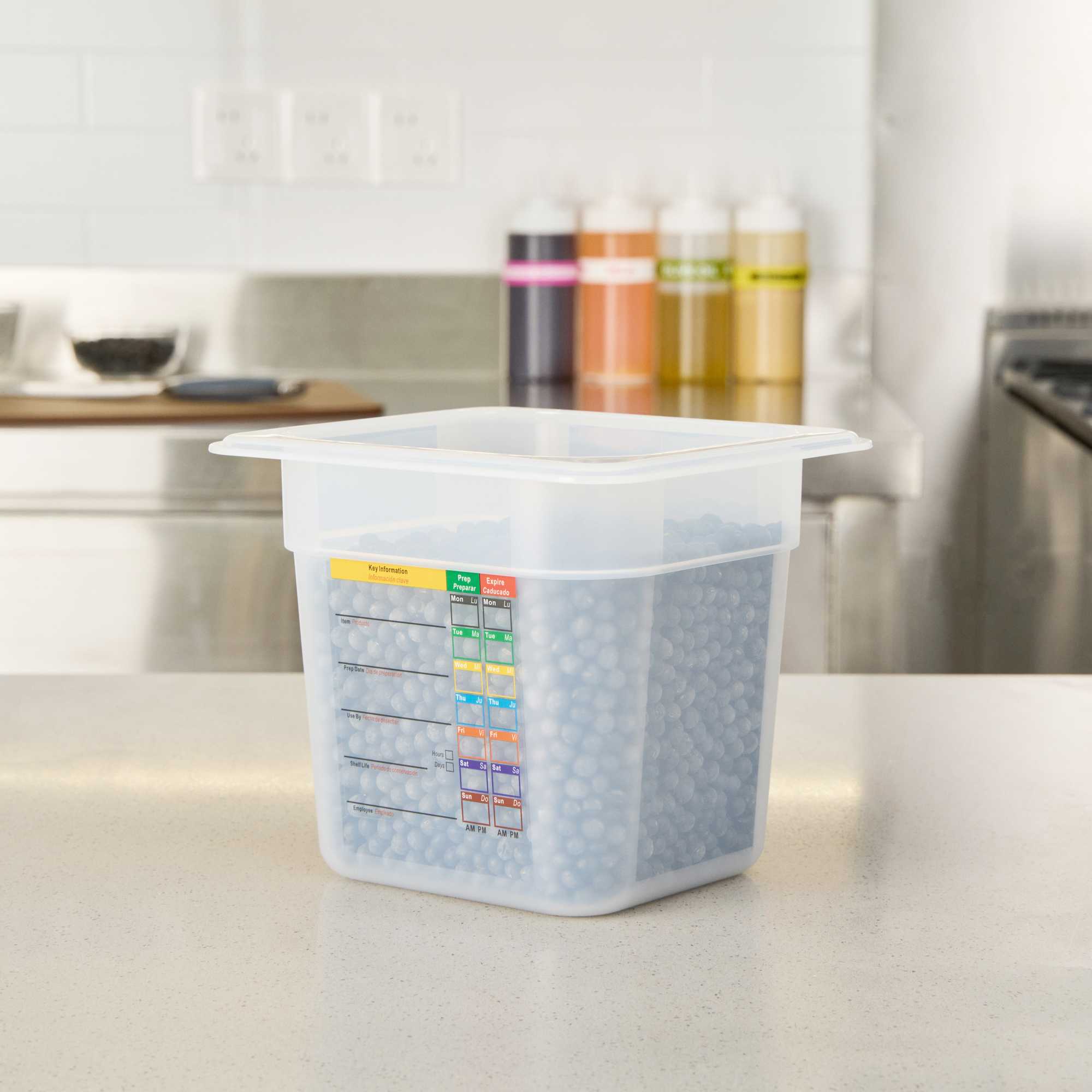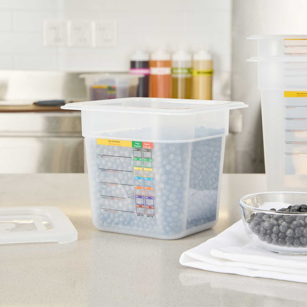 Maximize your kitchen's efficiency with versatile storage solutions. The Met Lux Reusable Plastic Food Container features a built-in label that reduces disposable label waste and costs by allowing staff to record important details. This plastic food container maximizes storage space by up to 25% compared to round containers, making it ideal for space-constrained kitchens. Its dishwasher safe design ensures easy cleaning and reuse, supporting sustainability in your foodservice operations. Constructed from durable plastic, this freezer-safe food container withstands temperatures from -40 to 203 degrees Fahrenheit, offering flexibility for both hot and cold food storage. The stackable food storage design enhances organization, while its dimensions of 6.85 inches in length, 6.2 inches in width, and 5.9 inches in height provide ample capacity for 2.3 quarts of ingredients or prepared dishes. Each order includes 1 Met Lux Reusable Plastic Food Container.